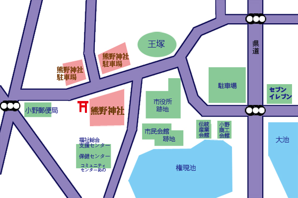 ■神戸電鉄小野駅下車 → 徒歩15分、タクシー5分